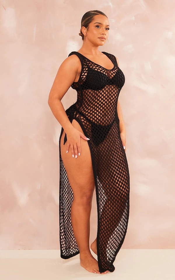 Sublime dans cette robe longue ! Sa maille crochet est à tomber et on adore sa couleur noire et son design fendu sur les côtés. Notre conseil mode ? La porter par-dessus un maillot de bain pour un look de piscine qui ne passe pas inaperçu. Gorgeous !