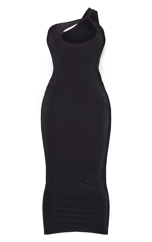 Shape Robe longue moulante noire à découpe et épaule nouée