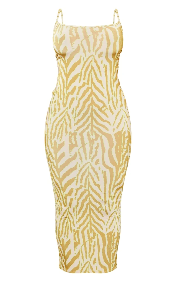 Shape Robe longue moulante vert citron à imprimé animal et bretelles spaghetti