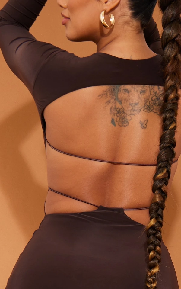 Shape Robe manches longues très moulante chocolat dos nu à lanières