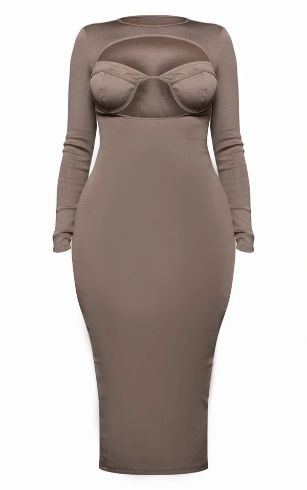 Shape Robe longue bandage taupe à détail bonnet