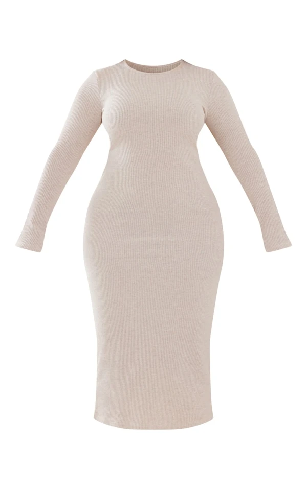 Shape Robe mi-longue côtelée dos nu avoine à manches longues