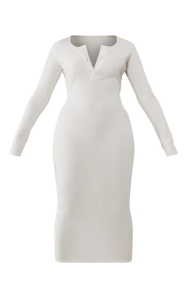Shape Robe mi-longue côtelée écrue boutonnée devant à manches longues
