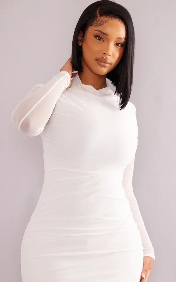 Pour nos fans de mesh ! Cette robe à la coupe moulante et au coloris blanc épuré est à se procurer sans plus attendre ! On adore sa matière mesh délicate et son col haut qui fait super plaiz. Plus qu’à ajouter une paire de mules et go.