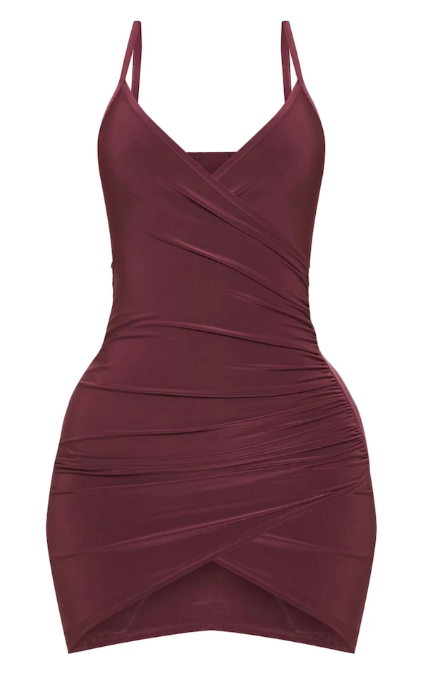 Shape – Robe moulante bordeaux à côté froncé et fines bretelles