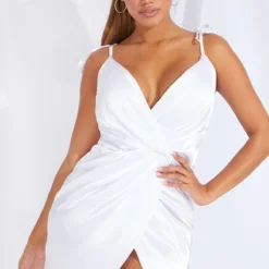 Shape Robe moulante cache-coeur satinée blanche à bretelles nouées