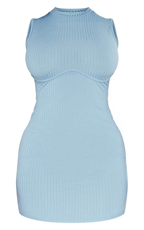 Shape Robe moulante côtelée bleu gris à armature sous le buste