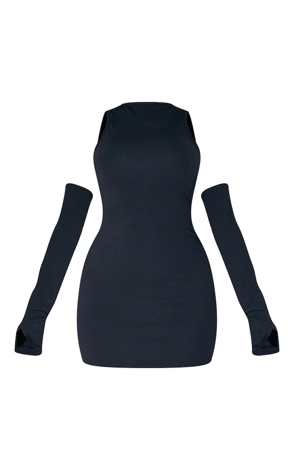 Shape Robe moulante côtelée douce noire à dos découpé et épaules dénudées
