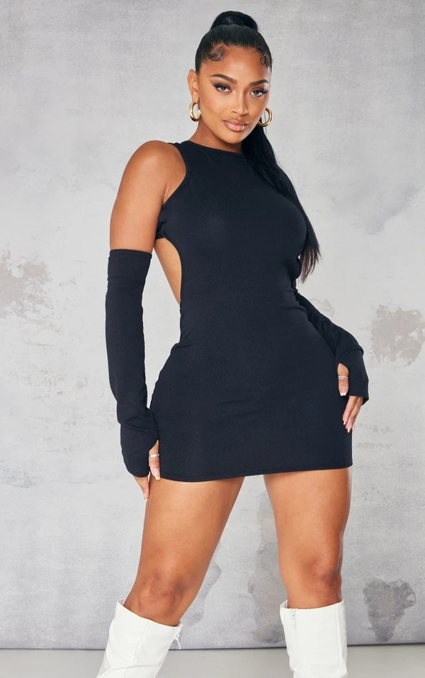 Cette robe vient tout droit du futur ! Avec sa couleur noire, son dos découpé et ses épaules dénudées, elle devance toutes les tendances. Il ne manque plus qu’un sac à main contrastant et des bottes hautes blanches pour le look complet. Un outfit fantastique !