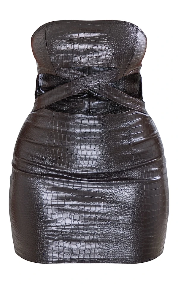 Tellement canon la robe ! Avec sa coupe moulante, sa découpe et son similicuir noir, elle nous a fait craquer. Il ne manque qu’une paire de talons flashy pour la tenue complète !
