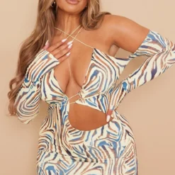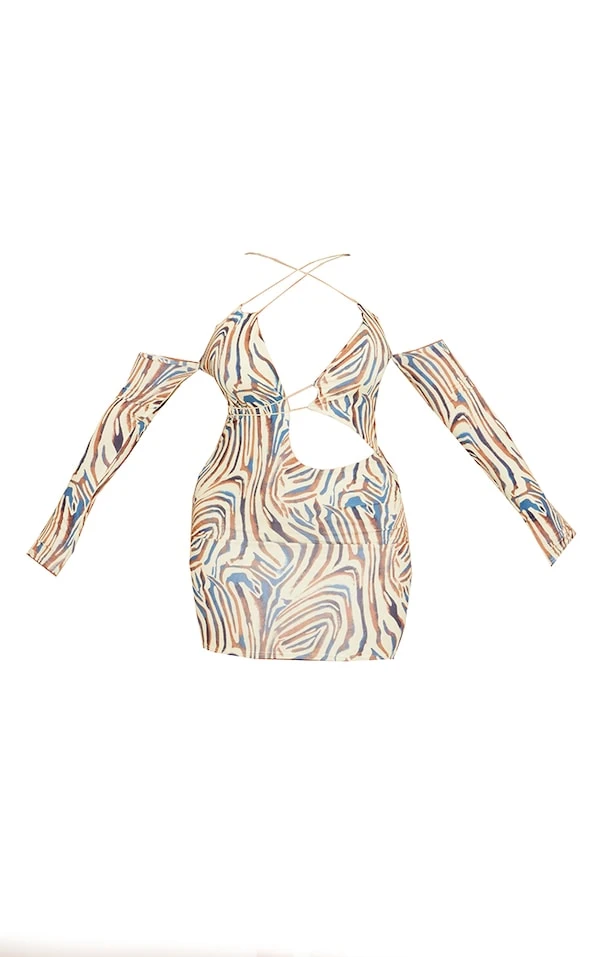 Shape Robe moulante découpée gris pierre imprimé animal à col bardot et bretelles spaghetti
