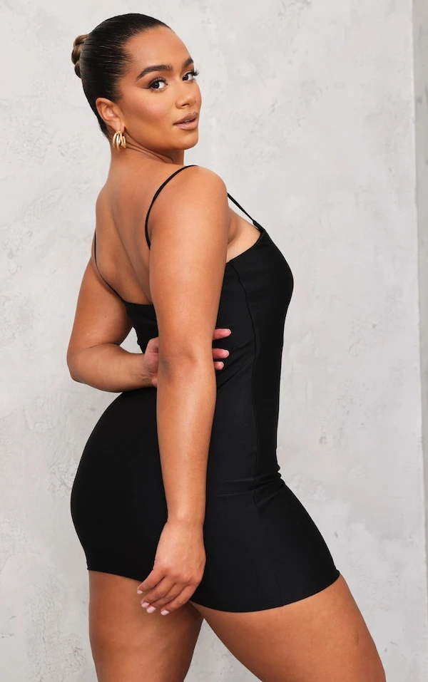 Shape Robe moulante disco sculpt noire à bretelles Spaghetti
