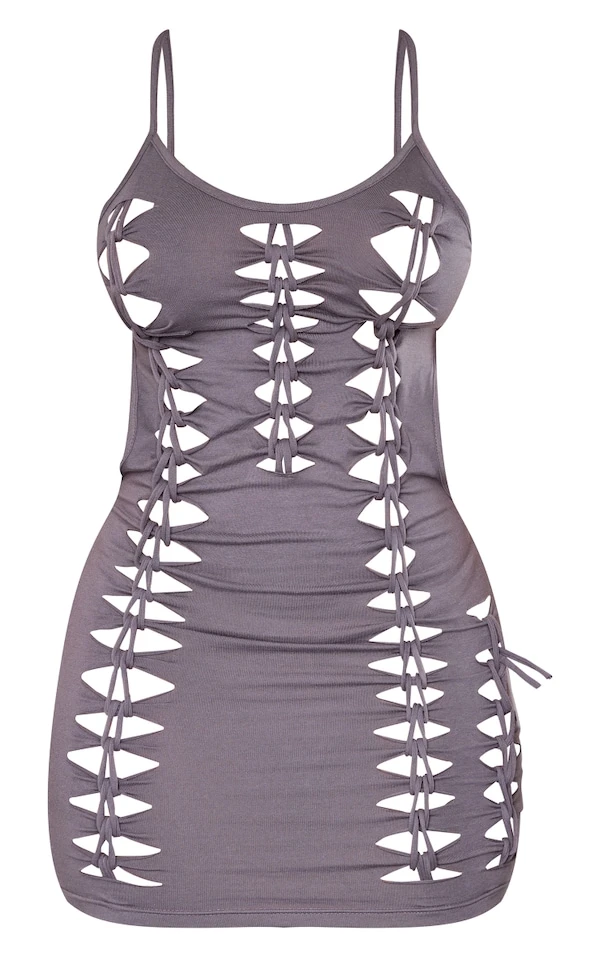 Shape Robe moulante en coton gris anthracite lacée à dos ouvert