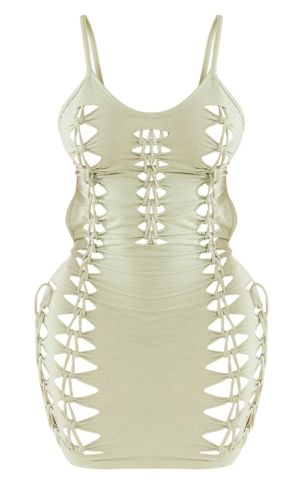 Shape Robe moulante en coton vert sauge kaki lacée à dos ouvert
