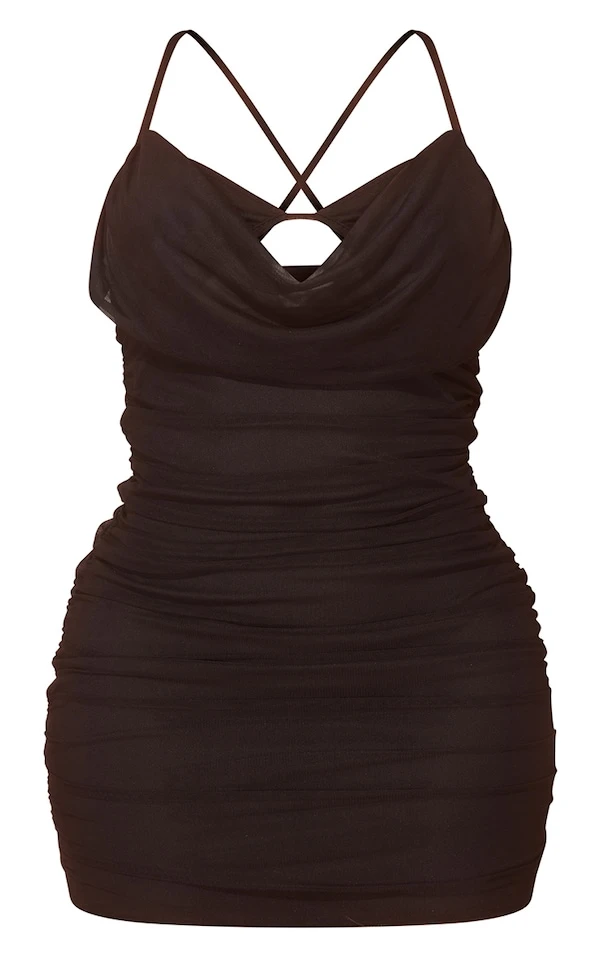 Shape Robe moulante en mesh noir à col bénitier et fronces détail bralette