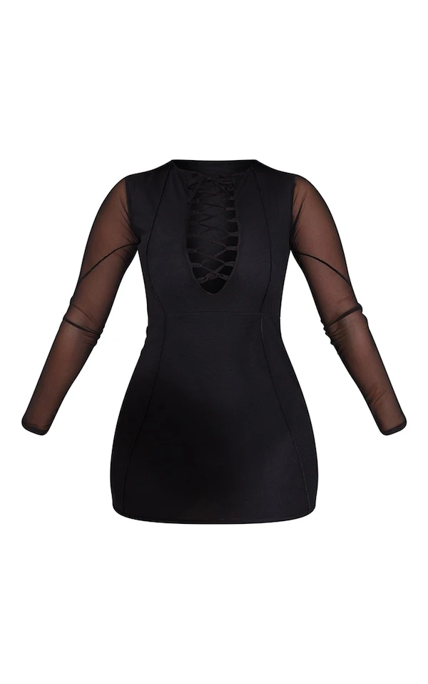 Shape Robe moulante en mesh noir à lacets et manches longues