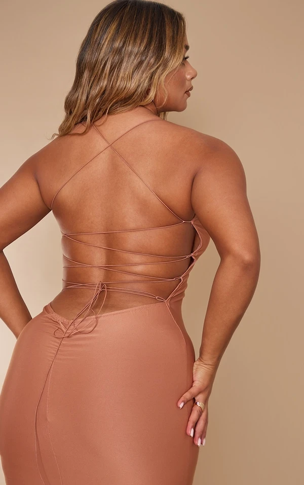 Shape Robe moulante mi-longue argile nouée au dos à derrière froncé
