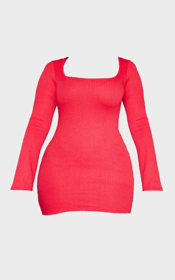 Shape Robe moulante rouge texturée à col carré et manches longues
