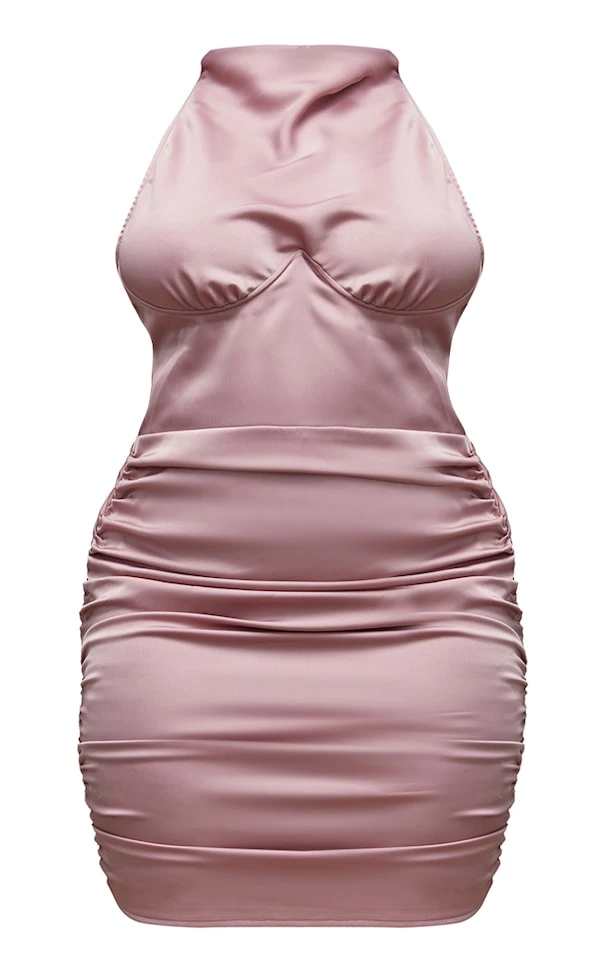Shape Robe moulante satinée froncée rose à armatures et dos nu