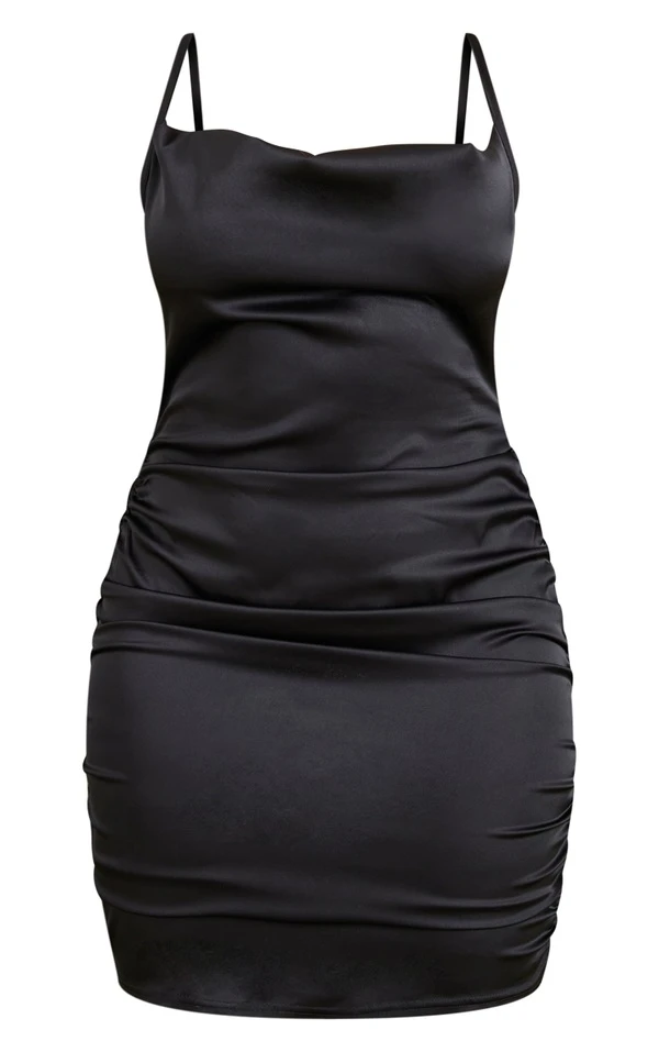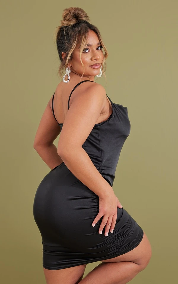 Look de bombe dans cette robe ! On adore son effet satiné noir, son design froncé et son col bénitier. Elle se porte en soirée avec une paire de talons, quelques accessoires et un max de sass. Vous êtes sublime !