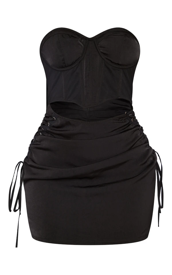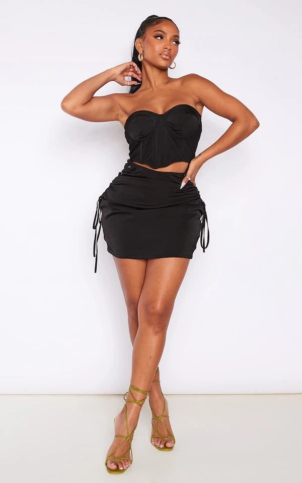 Totalement fans de cette robe à la coupe moulante flatteuse. Avec sa couleur noire qui se porte avec tout et son style corset, c’est un coup de coeur. On la porte avec une paire de sandales lacées et quelques accessoires pour un look de soirée qui attire tous les regards !