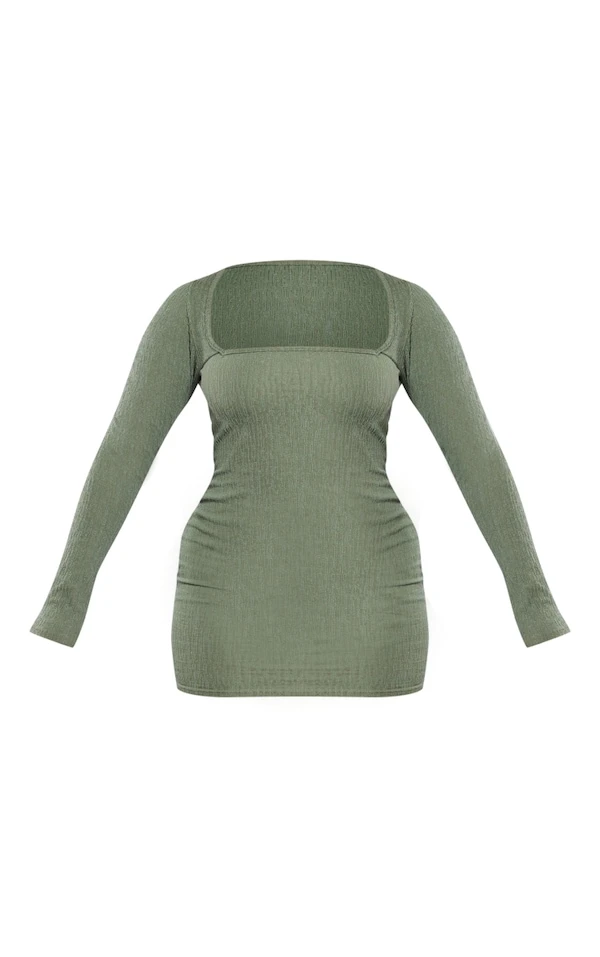 Shape Robe moulante texturée kaki mousse à col carré et manches longues