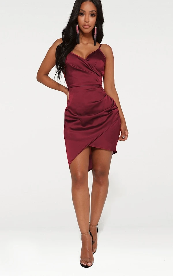 Injectez une touche très chic à votre garde-robe avec cette robe portefeuille. On adore son coloris bordeaux, sa matière satinée sensuelle et son style portefeuille très chic. On conseille de l’associer à une paire de talons et à quelques accessoires pour un look vraiment canon.