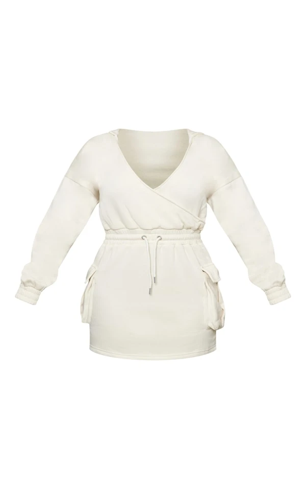 Shape Robe pull cache-coeur beige style utilitaire à décolleté et poches