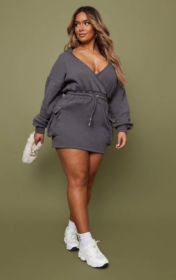 Shape Robe pull cache-coeur gris anthracite style utilitaire à décolleté et poches