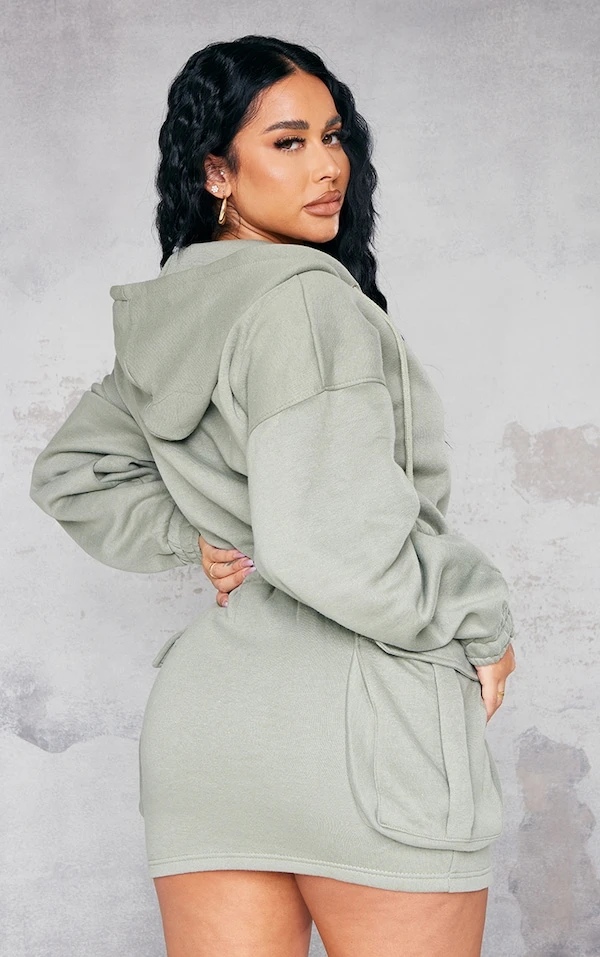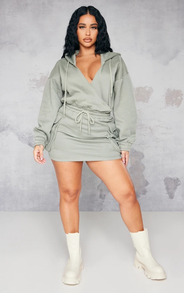 Shape Robe pull cache-coeur vert sauge kaki style utilitaire à décolleté et poches