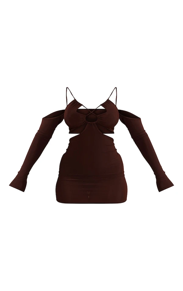 Shape Robe très moulante marron chocolat à lacets et épaules dénudées