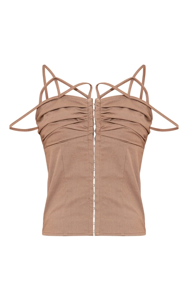 Tall Mini-robe effet lin taupe style corset