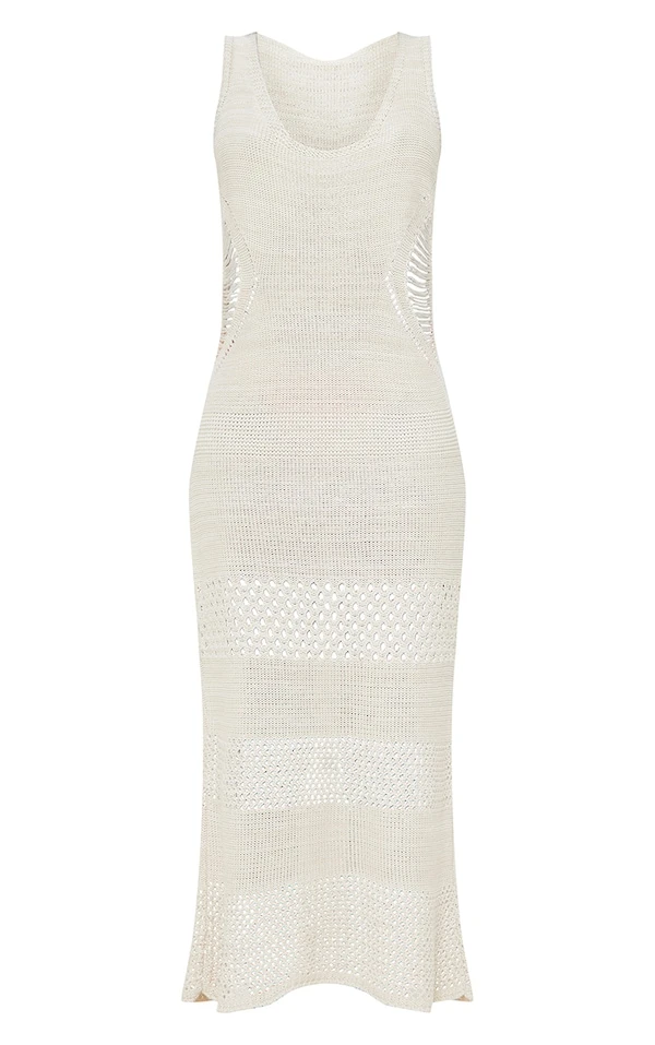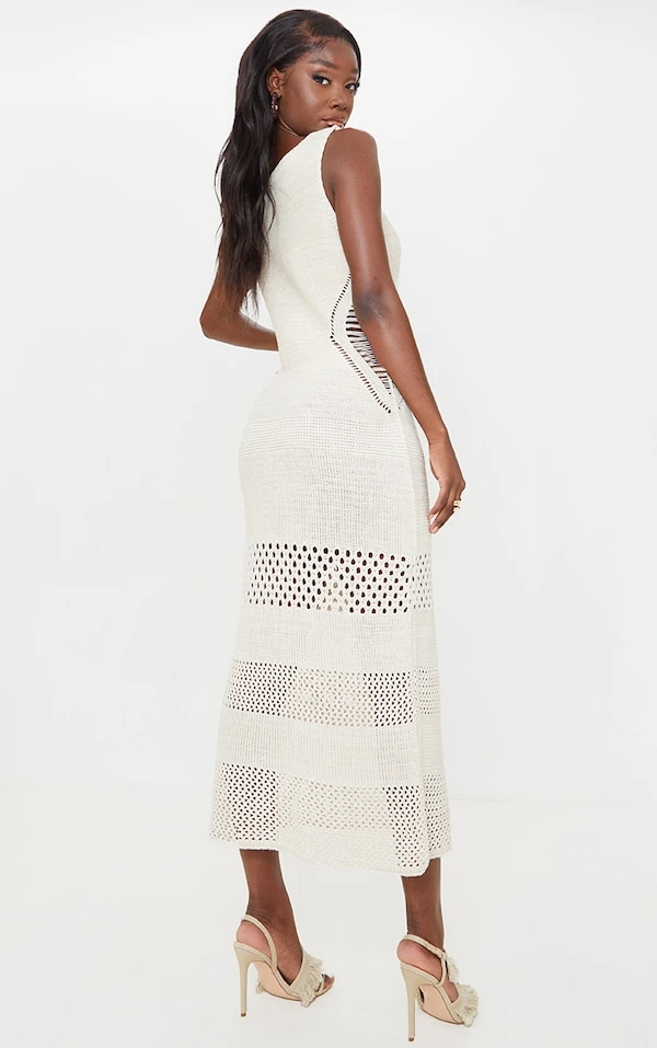 Canon la robe crème! Avec sa matière crochet, sa coupe longue et son décolleté, elle nous a fait craquer. Il ne manque qu’une paire de compensées! Un mood.