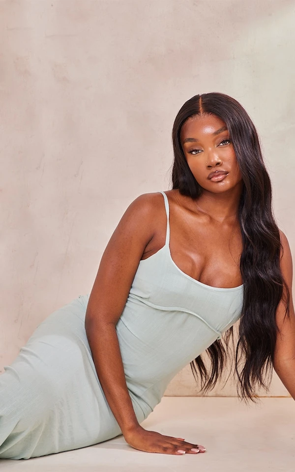 Trop belle dans cette robe longue. Avec la douceur de sa couleur sauge, sa matière en effet lin et son design à armatures, elle a tout pour plaire. Portée avec une paire de mules et quelques accessoires, cette robe vous assure un look aussi culte que vous !