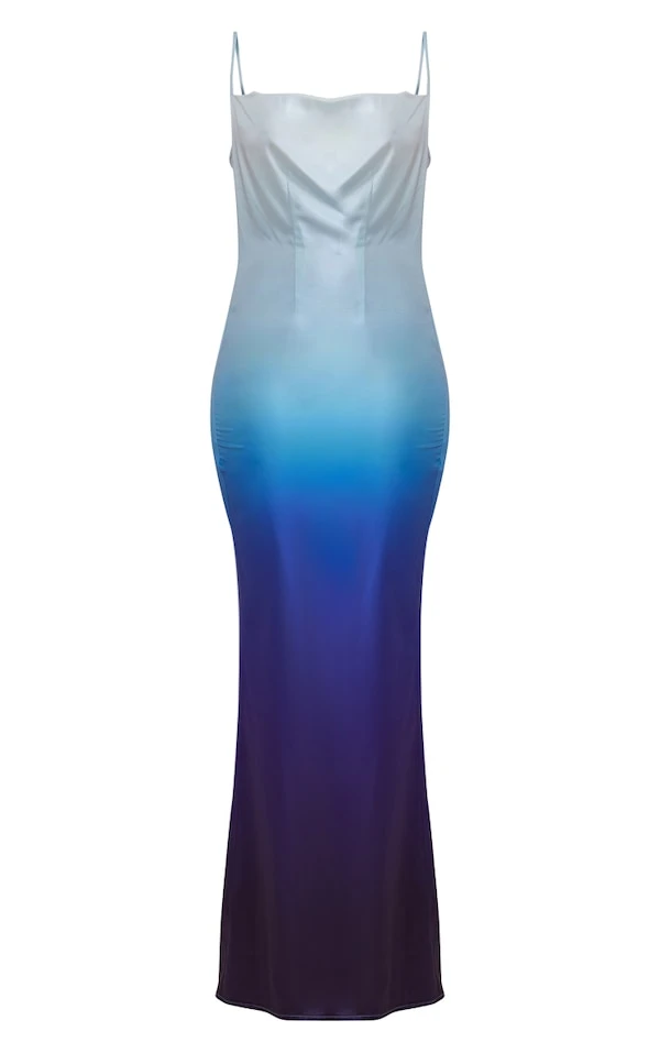 Coup de coeur immédiat sur cette robe à la coupe longue ! On est clairement sous le charme de son coloris bleu trop beau, de sa matière satinée très luxe et de son imprimé dégradé canon. Porté avec une paire de talons transparents, cette pièce vous vaudra tous les regards.