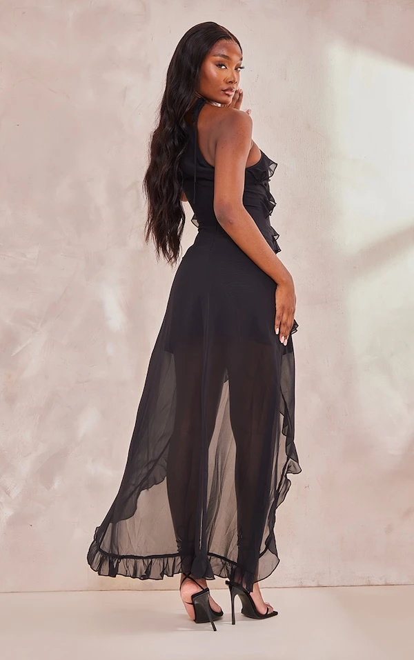On crush illico sur cette robe ! Avec sa coupe longue hyper canon, sa couleur noire qui va avec tout et son design à bretelles, comment y résister ? Plus qu’à enfiler une paire de talons lacés avec des bijoux pour finaliser le tout. Le look nous fait rêver !