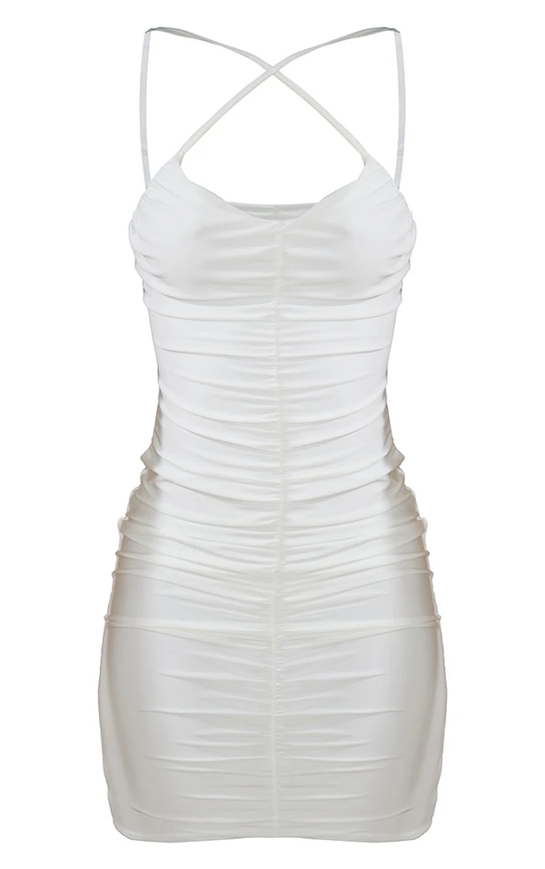 Iconic la robe blanche ! Avec sa coupe moulante, son devant croisé et ses lanières, elle nous a fait craquer. Il ne manque qu’une paire de talons !