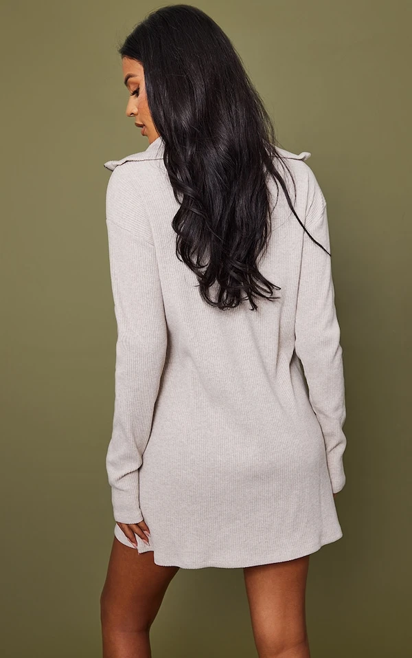 Tall Robe pull oversize beige côtelée à col montant et demi zip
