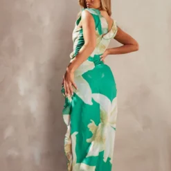 Robe à Fines Bretelles Satinée Bleu Marine Fendue Et Buste Froncé