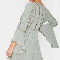 Mini Robe De Plage Découpée Gris Pierre Effet Lin à Dos Nu Et Anneau