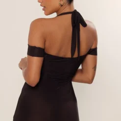 Robe Très Moulante Sans Manches Chocolat Découpée Sur Les Côtés