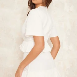 Robe Droite Blanche à Jupe à étages Volantés Et Manches Courtes