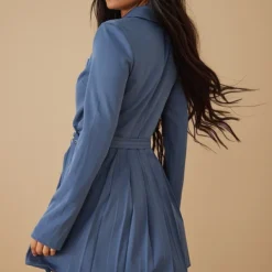 Robe Blazer Style Utilitaire Bleue à Manches Longues Et Ceinture