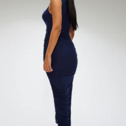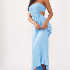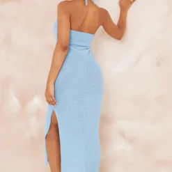 Robe Mi-longue Bleu Vif Côtelée Découpée à Bretelles Et Noeud