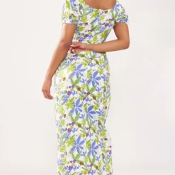 Robe Longue En Coton Bleu à Imprimé Fleuri Et Découpe Devant