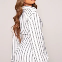 Robe Chemise Rayée Grise à Manches Longues Et Détail Noué Devant