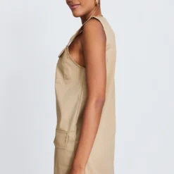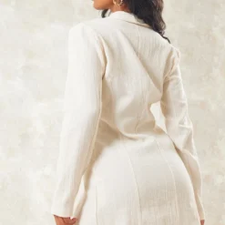 Robe Blazer Tissée Gris Pierre à Manches Longues Et Cordons Resserrables à La Taille