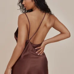 Robe Droite Effet Lin Terracotta Découpée à Perles Et Dos Nu