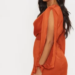 Robe Moulante Texturée Rose à Détail Drapé Et Décolleté Plongeant Barre En V