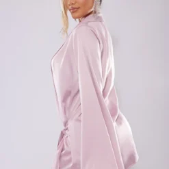 Robe Blazer Droite Rose Clair à Décolleté Très Plongeant Détail Noeud